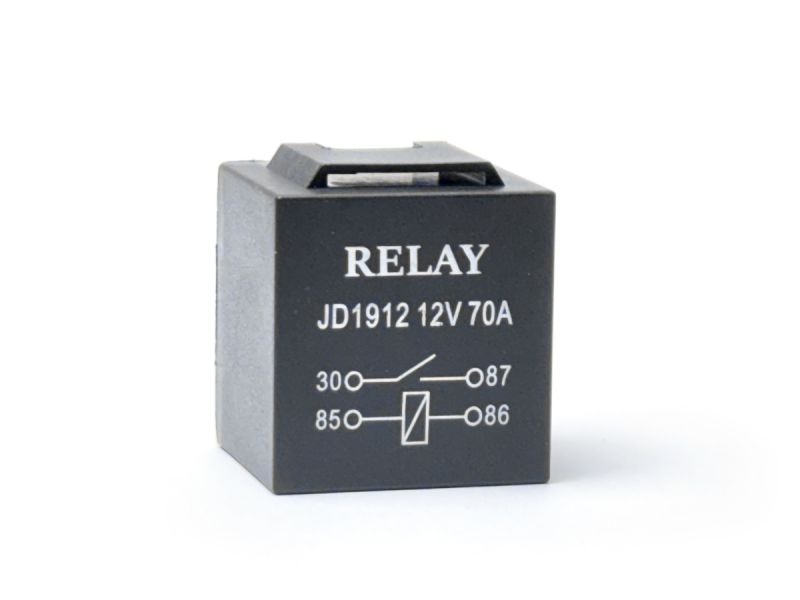 Электромагнитное реле 12V 70A, 4-контактное (SPST, NO) (рабочая нагрузка). Медная обмотка. Контакты 2 шт 6,3 мм и 2 шт 9,5 мм, латунные с покрытием. Корпус герметичный, с кронштейном.